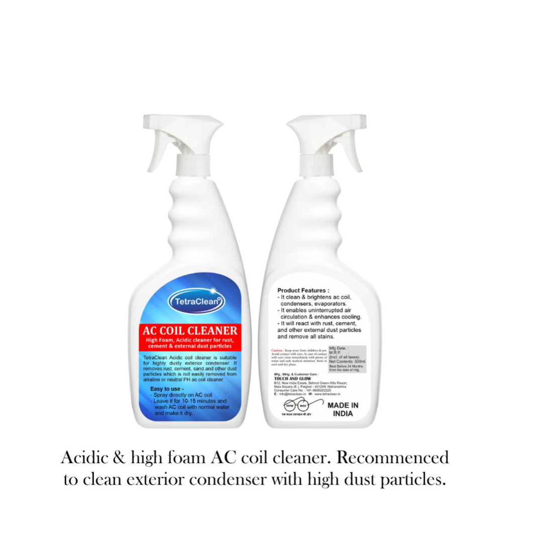 TetraClean Acidic & High Foam AC Coil Cleaner | Removes Rust, Cement, and Heavy Dust | Ideal for Exterior Condensers (Available in 500ml )