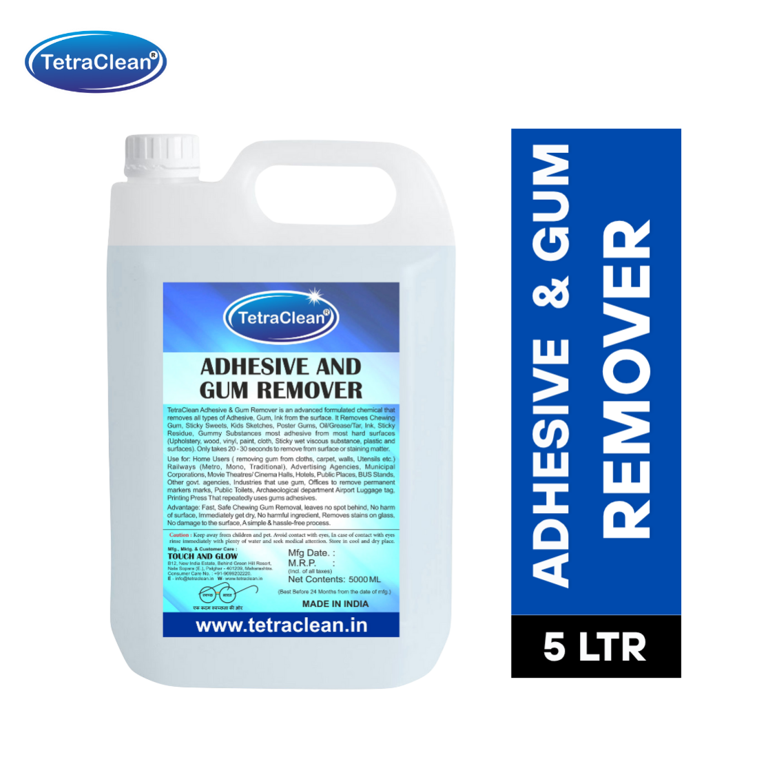 TetraClean Adhesive & Gum Remover – Fast & Safe Cleaner for Stickers, Gum, Glue & Sticky Residues (5 Litre)