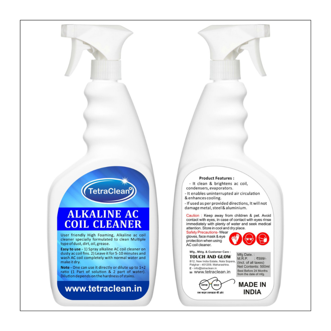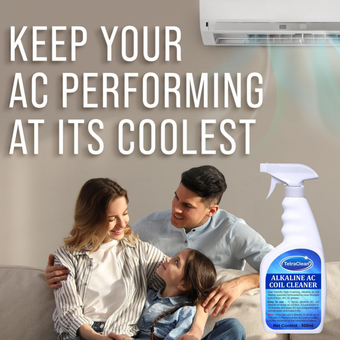 TetraClean Alkaline AC Coil Cleaner – High Foaming Formula for Deep Cleaning of AC Coils, Condensers & Evaporators – Enhances Cooling & Air Circulation (500ml)