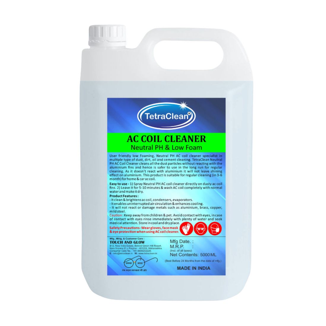 TetraClean AC Coil Cleaner | Neutral pH & Low Foam | 5 Litre | Safe for Aluminium, Brass & Copper Coils