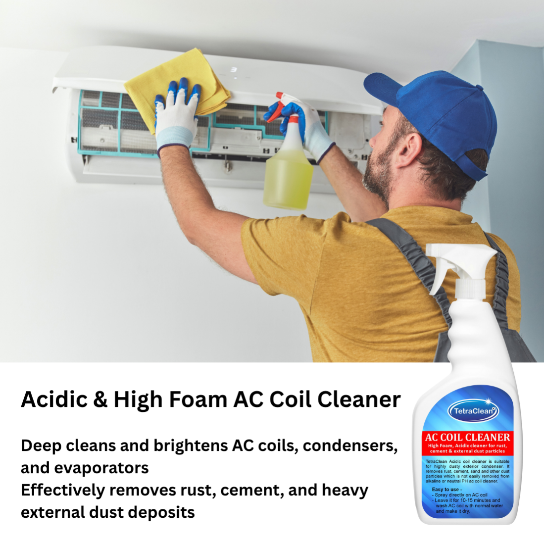 TetraClean Acidic & High Foam AC Coil Cleaner | Removes Rust, Cement, and Heavy Dust | Ideal for Exterior Condensers (Available in 500ml )