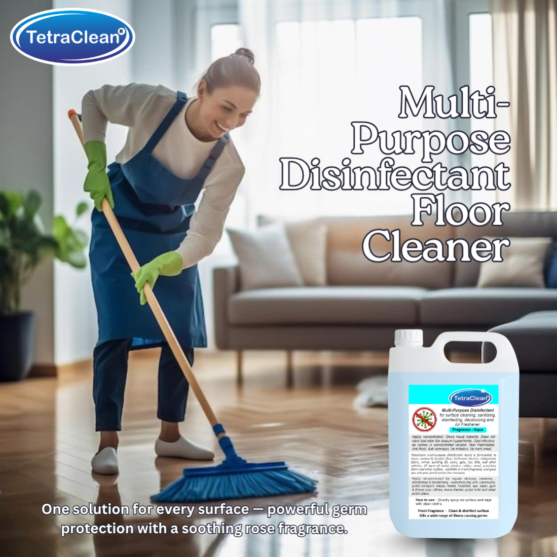 TetraClean Multi-Purpose Disinfectant Floor Cleaner – Powerful Germ Protection with Long-Lasting Aqua