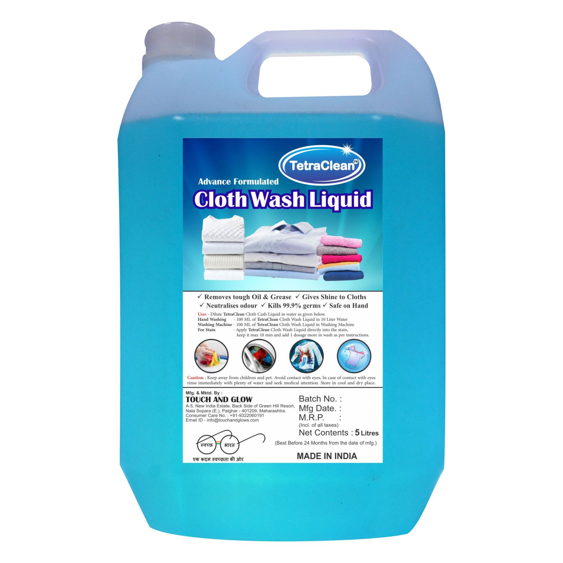 TetraClean Premium Blue Liquid Cloth Wash – Advance Grease & Odor Removal, Germ Protection, Shine Booster, 5 Liter