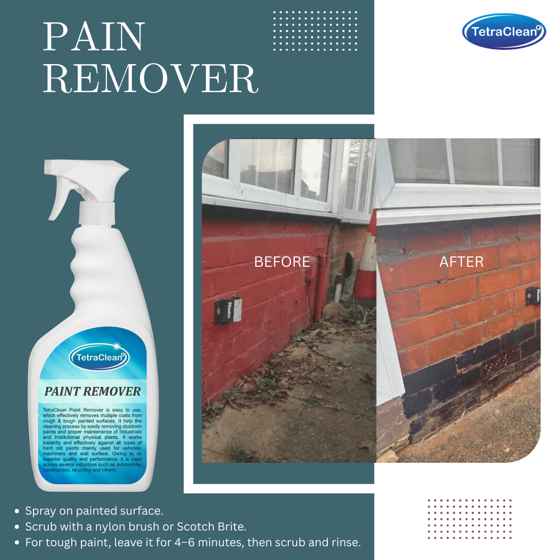 TetraClean Paint Remover is a powerful and easy-to-use solution specially formulated to remove multiple layers of tough and stubborn paints from various surfaces. Designed for industrial and commercial applications, it effectively dissolves old, rough, and hardened paint coatings including oil paint, enamel paint, emulsion paint, powder coating, and cellulose paint. The fast-acting formula works efficiently on painted walls, machinery, vehicles, metal parts, and structural surfaces, making repainting and surface preparation quick and hassle-free. Ideal for use in chemical plants, refineries, automobile workshops, railways, shipyards, power stations, and construction sites, this high-performance paint remover ensures superior results with minimal effort while supporting proper surface maintenance and restoration.