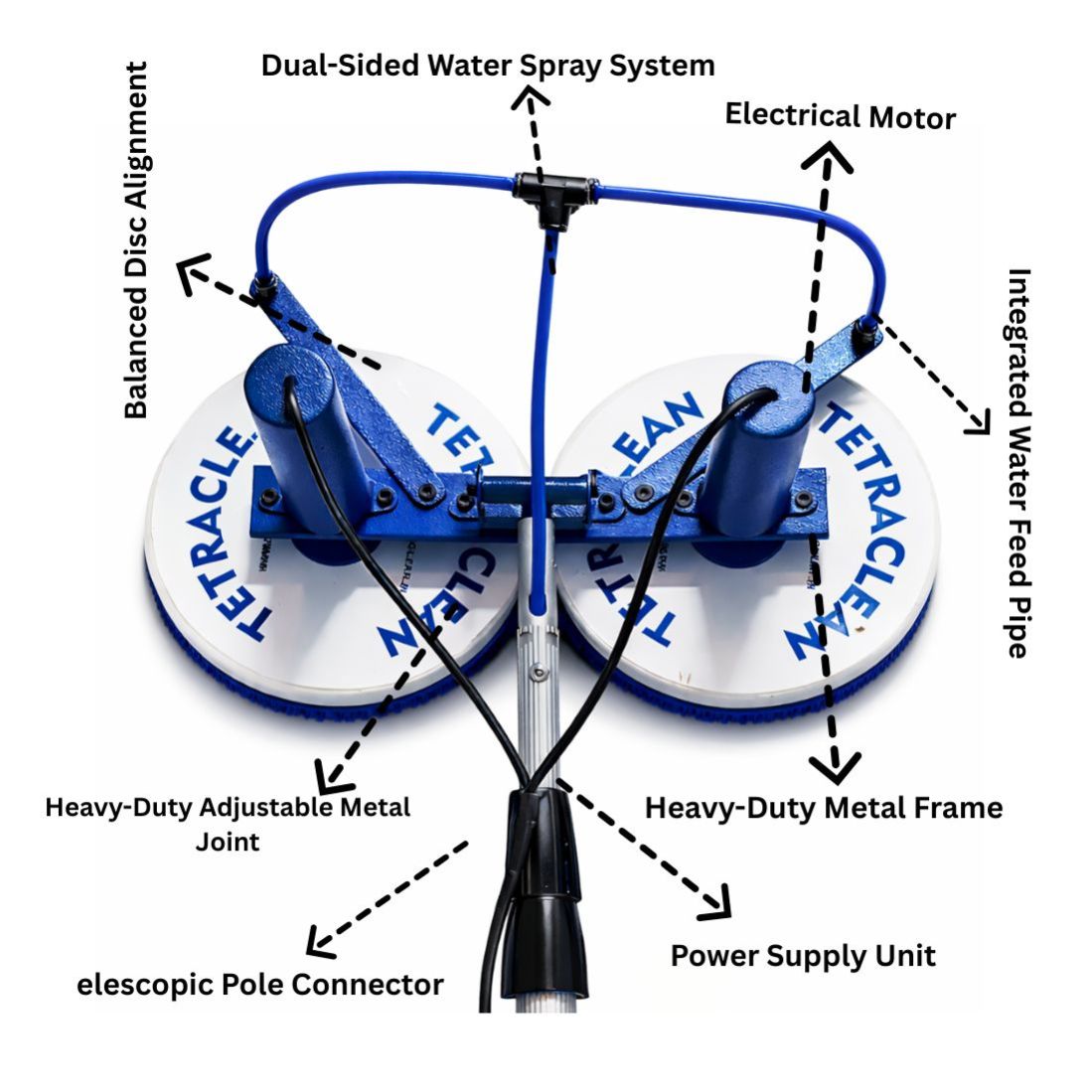TetraClean Dual Round Electric Solar Panel Cleaning Brush with water-fed system delivers powerful, scratch-free cleaning using dual rotating brushes, ensuring fast and efficient solar panel maintenance for residential and commercial use. Select 67 more words to run Humanizer.