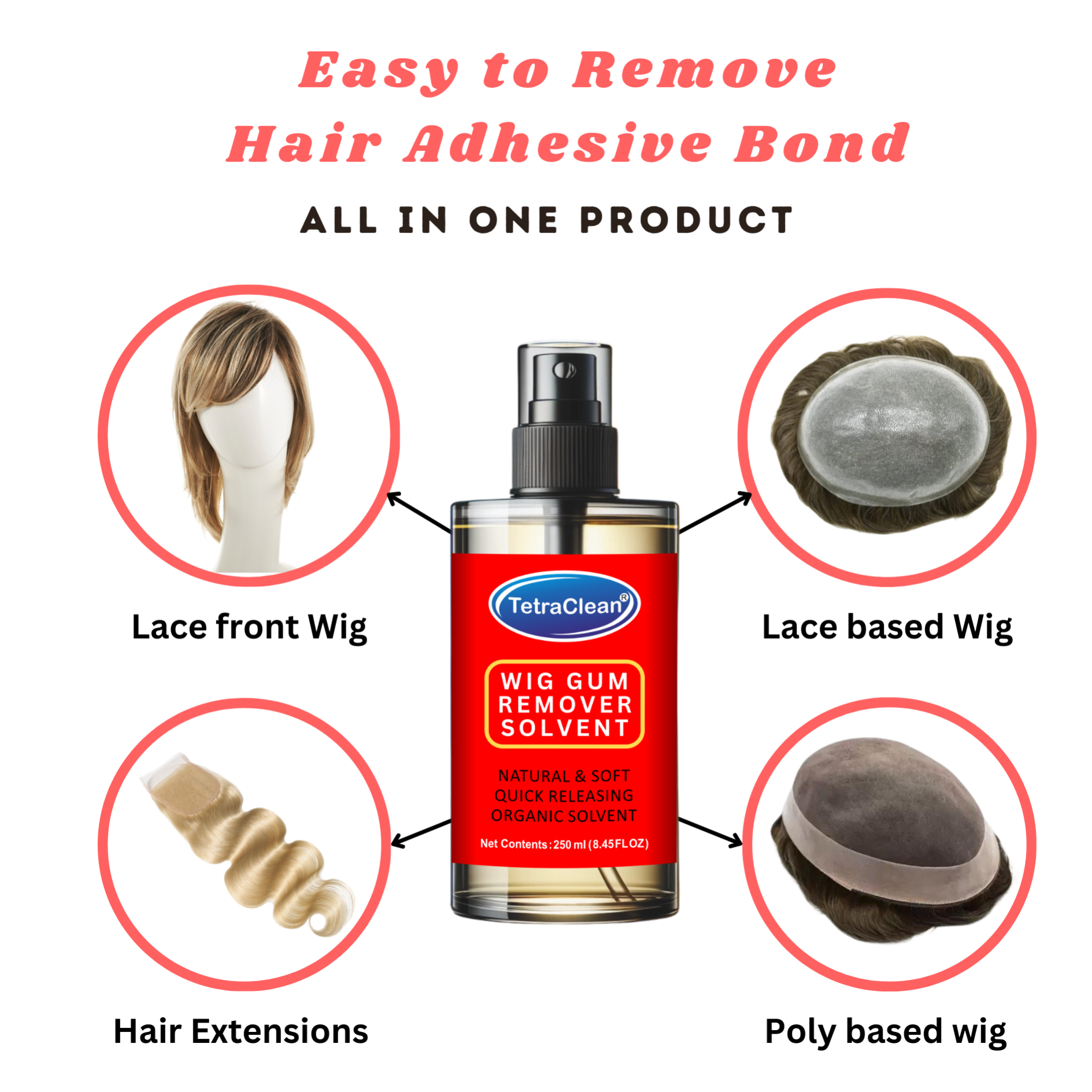 TetraClean Wig Gum Remover Solvent delivers fast, gentle, and residue-free removal of wigs, extensions, and hair patches with its natural citrus-based formula—safe on skin and effective on all adhesives.