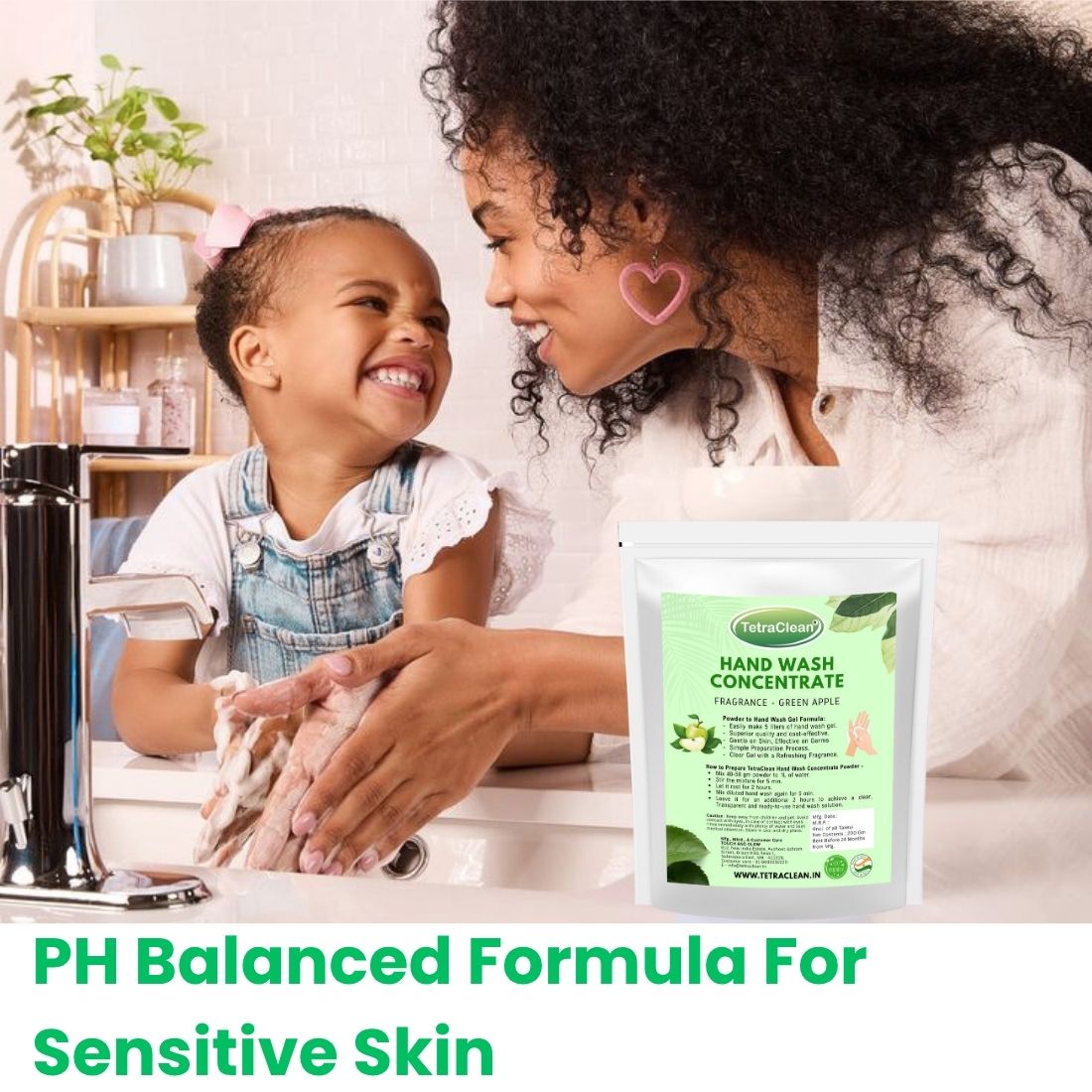 TetraClean Hand Wash Concentrate (Green Apple Fragrance) is a refreshing and economical hygiene solution designed for everyday hand care. This innovative powder-to-liquid formula allows you to prepare up to 5 liters of premium liquid hand wash by simply adding water, making it ideal for homes as well as commercial and institutional use.