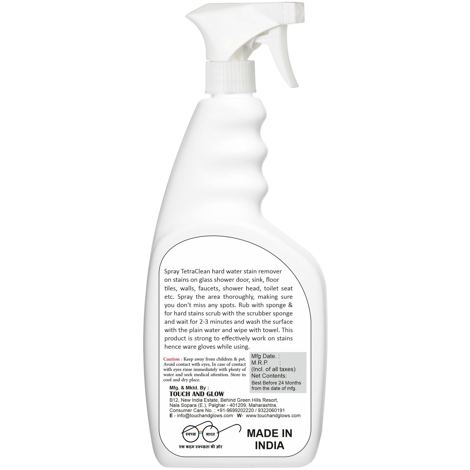 TetraClean Hard Water Stain Remover effortlessly cuts through tough limescale, water marks, rust, and soap scum on tiles, faucets, glass, sinks, and bathroom fittings. Its fast-acting formula restores shine, removes stubborn mineral deposits, and brings surfaces back to life with ease.