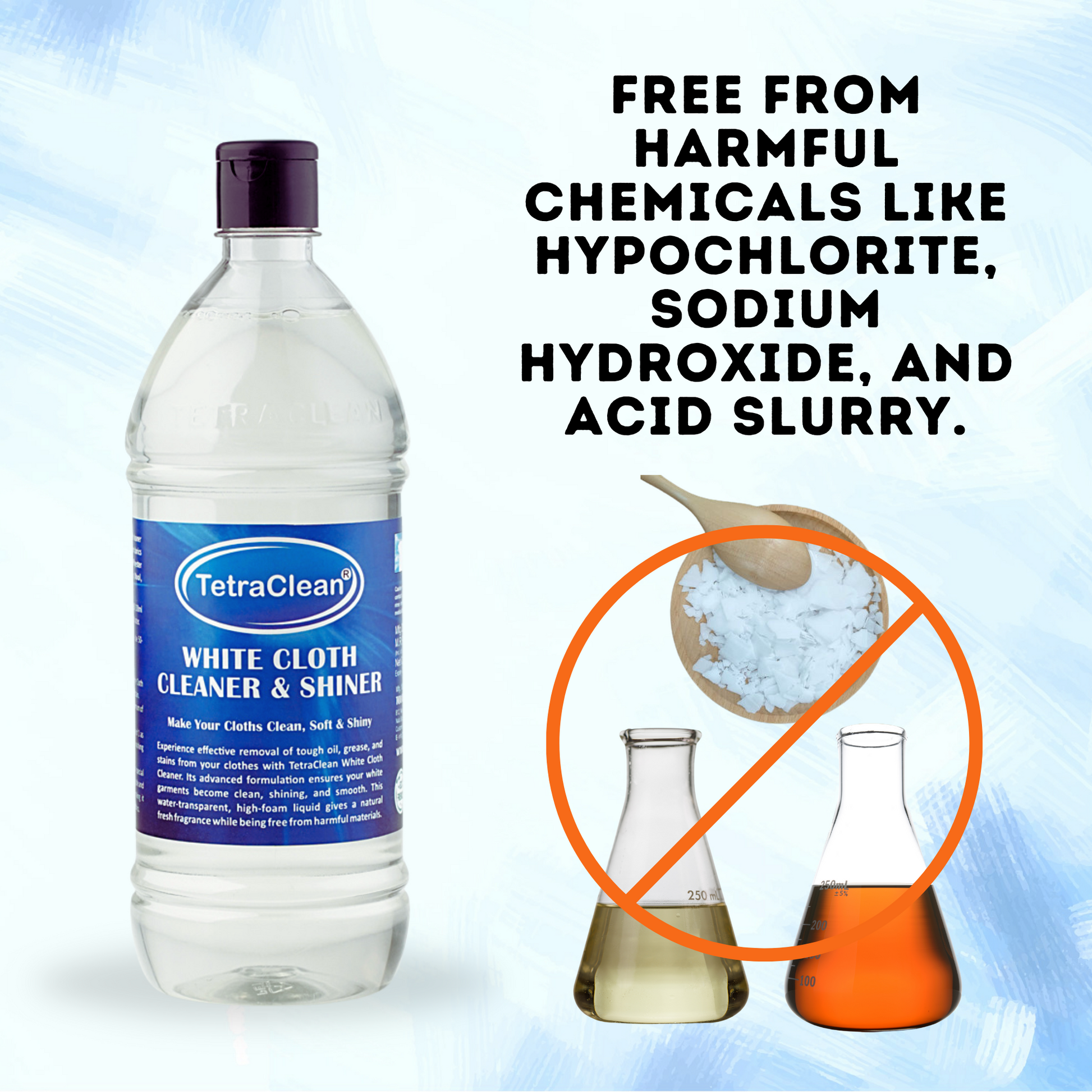 Bring your whites back to life with TetraClean White Cloth Cleaner & Shiner. Its advanced formula removes tough stains like oil, grease, sweat, food marks, and dirt while keeping fabrics soft and bright. Safe on skin, free from harsh chemicals, and perfect for everyday washing—this cleaner makes every wash feel fresh, clean, and effortless.