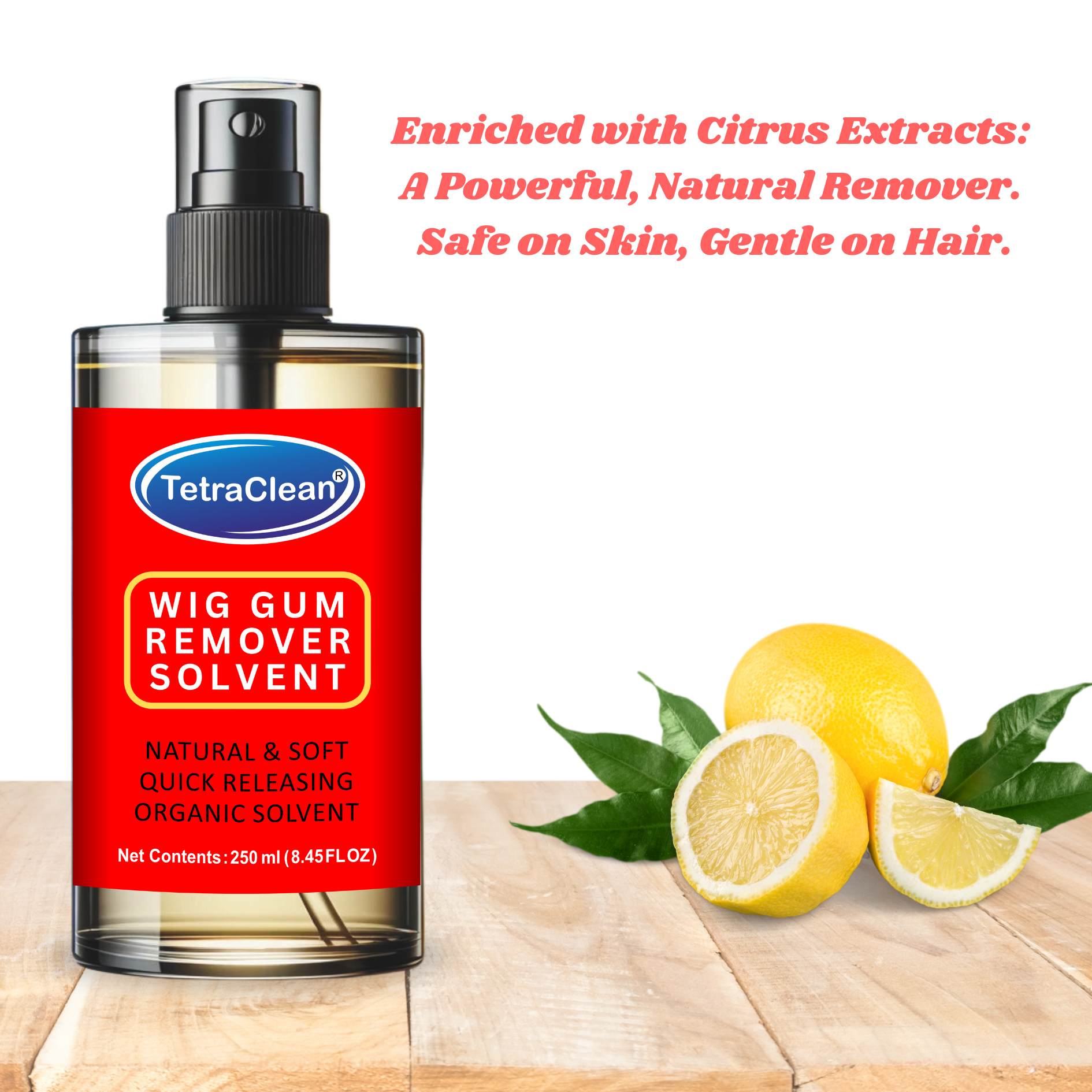 TetraClean Wig Gum Remover Solvent is a fast-acting, gentle, and organic adhesive remover designed to release lace wig glue, tape-in extensions, hair system adhesives, and poly wig bonds with complete ease. Infused with natural citrus extracts, it breaks down even the toughest adhesive layers quickly while remaining soft, non-greasy, and safe for sensitive skin.